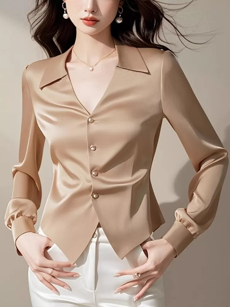V-neck Long Sleeve Waist Trimming Shirt Women V-neck Long Sleeve Waist Trimming Shirt Women
