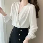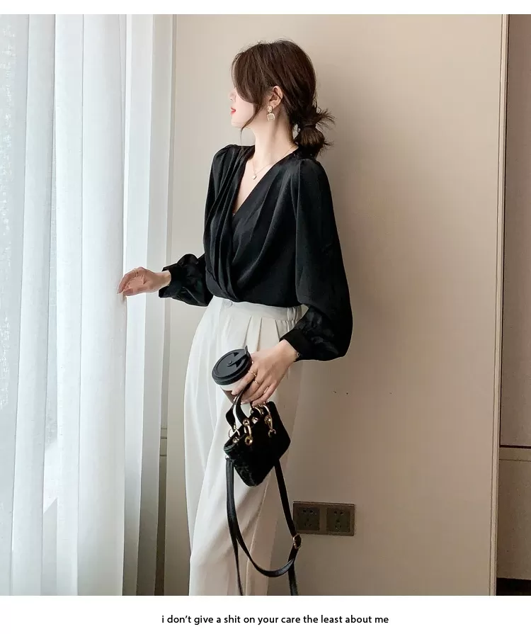 V-neck Satin Long-sleeved Shirt Women’s Professional Bottoming Shirt