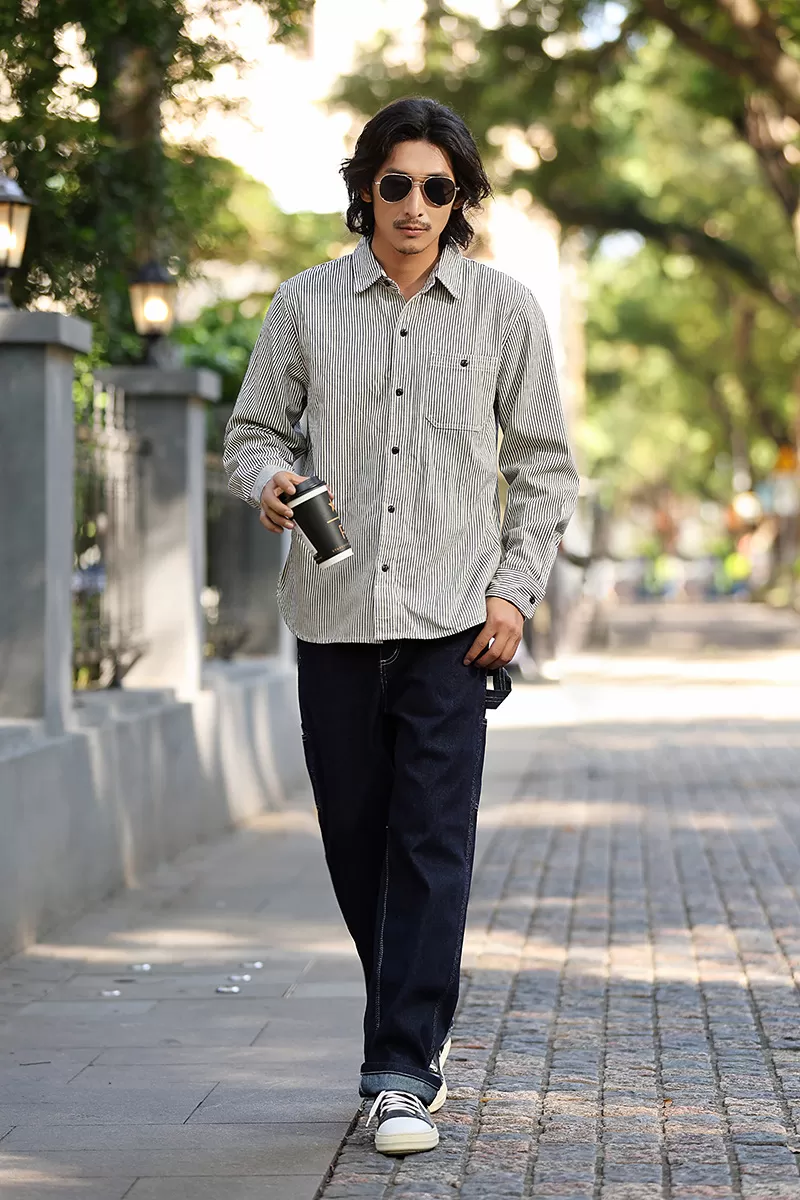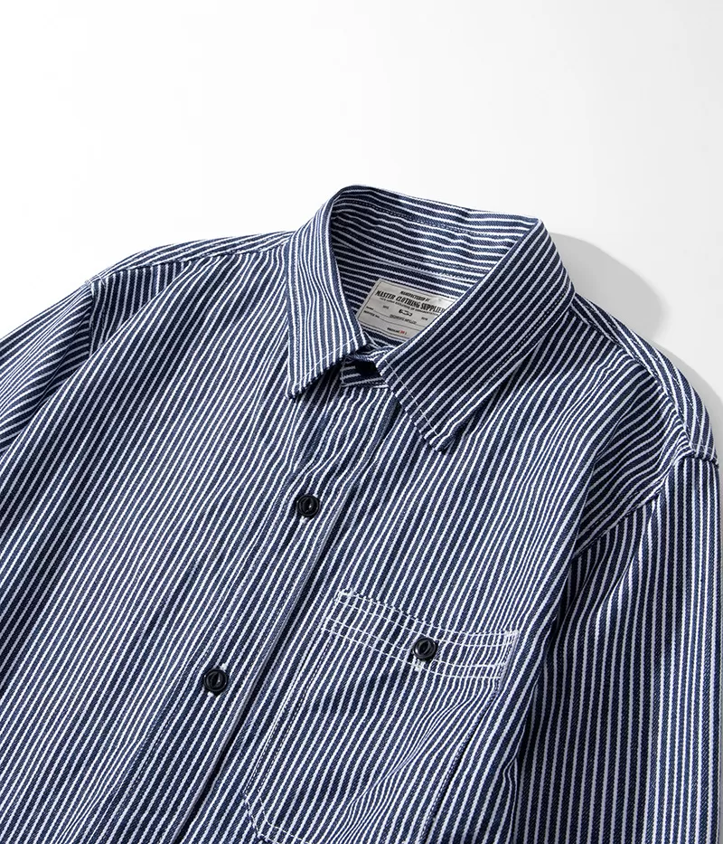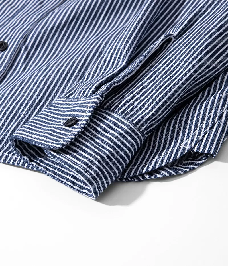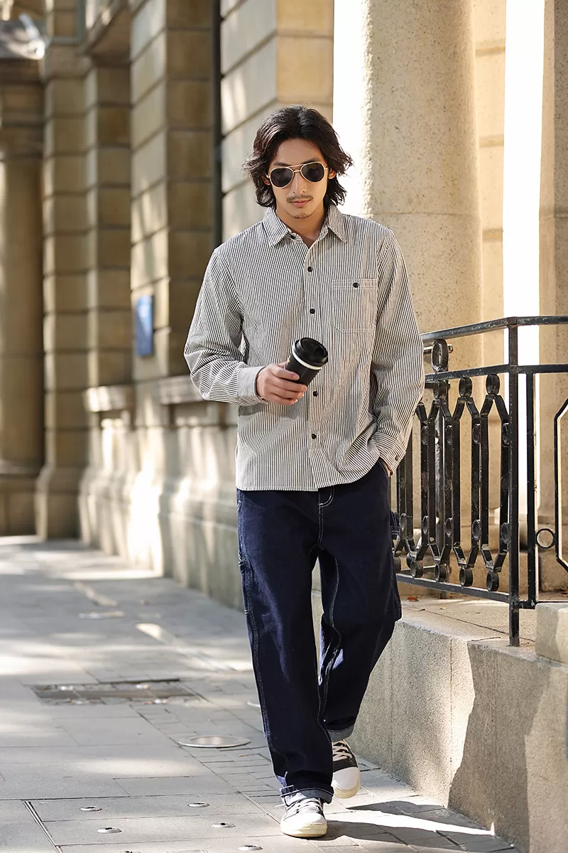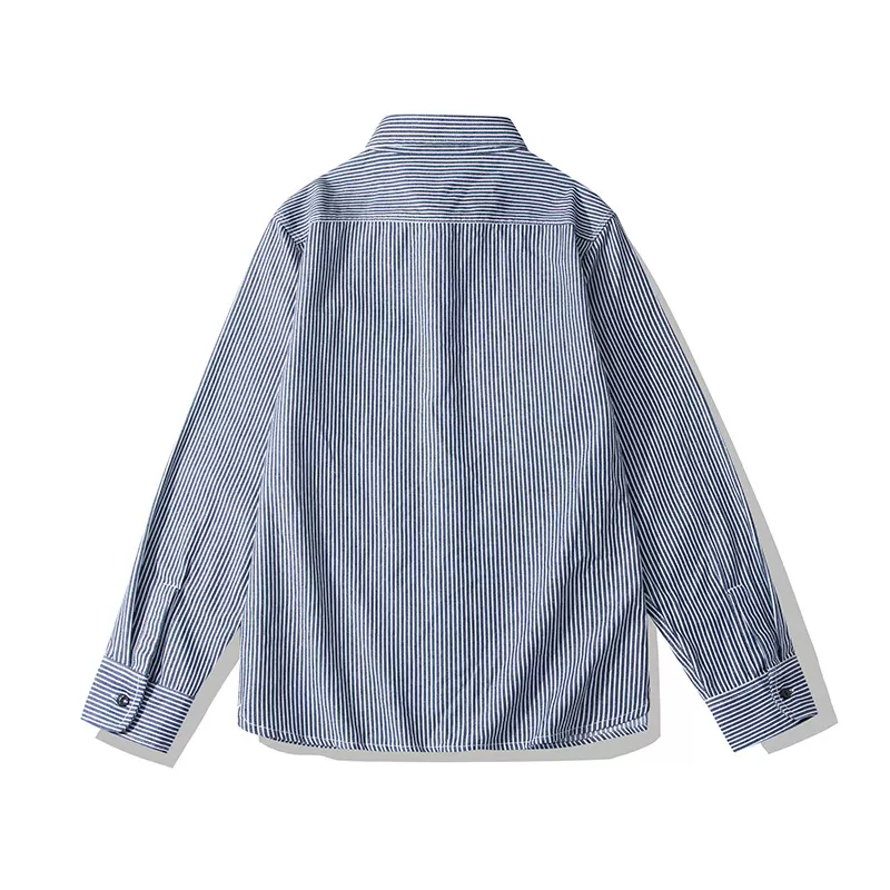 Vertical Striped Single Bag Shirt Men's Retro Long Sleeve Vertical Striped Single Bag Shirt Men's Retro Long Sleeve