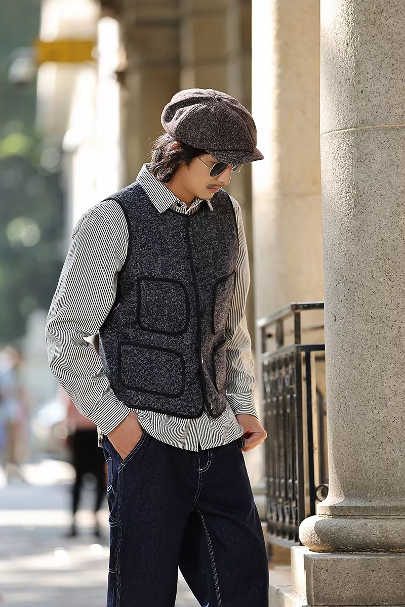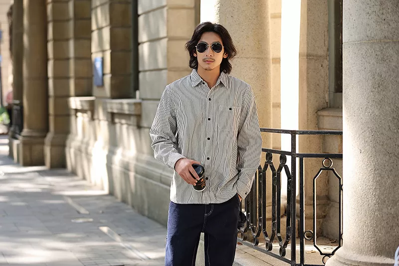 Vertical Striped Single Bag Shirt Men’s Retro Long Sleeve
