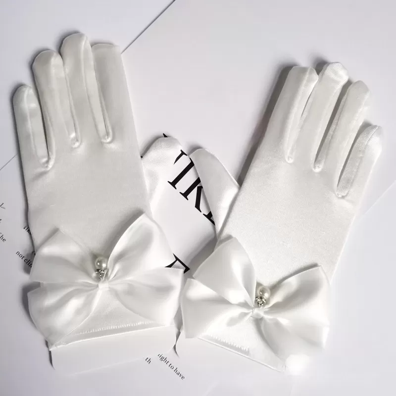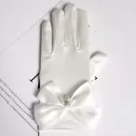 Wedding Gloves Satin Bow Elastic Dangling Beads Princess Style Wedding Gloves Satin Bow Elastic Dangling Beads Princess Style
