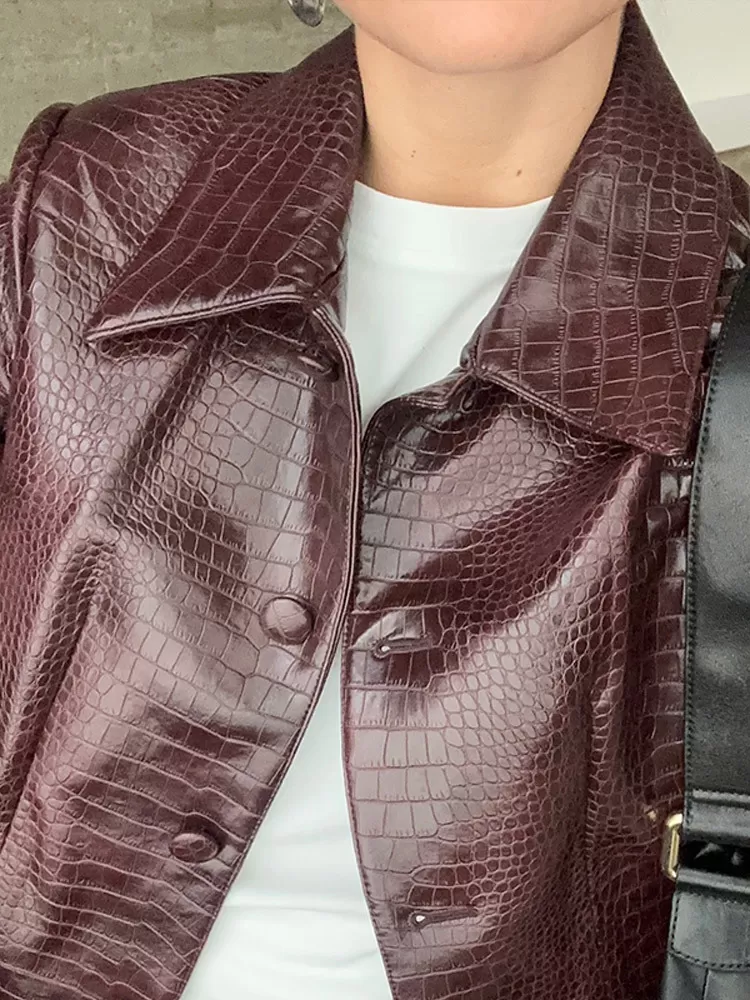 Wine Red Lapel Long Sleeve Leather Coat Wine Red Lapel Long Sleeve Leather Coat