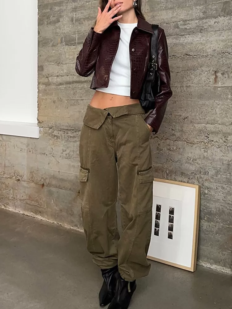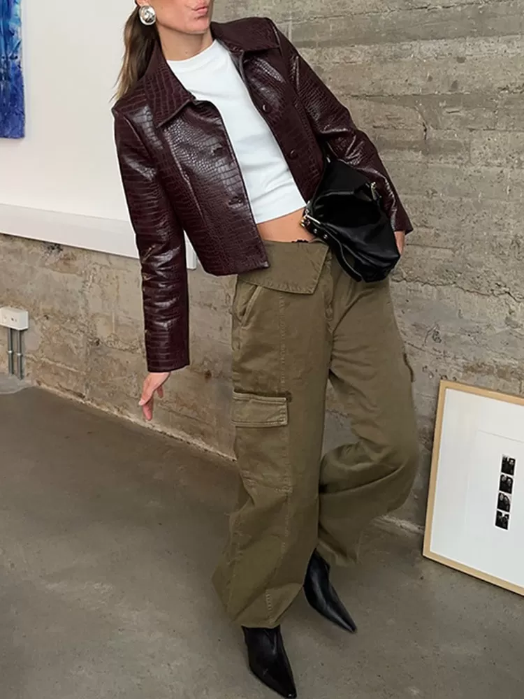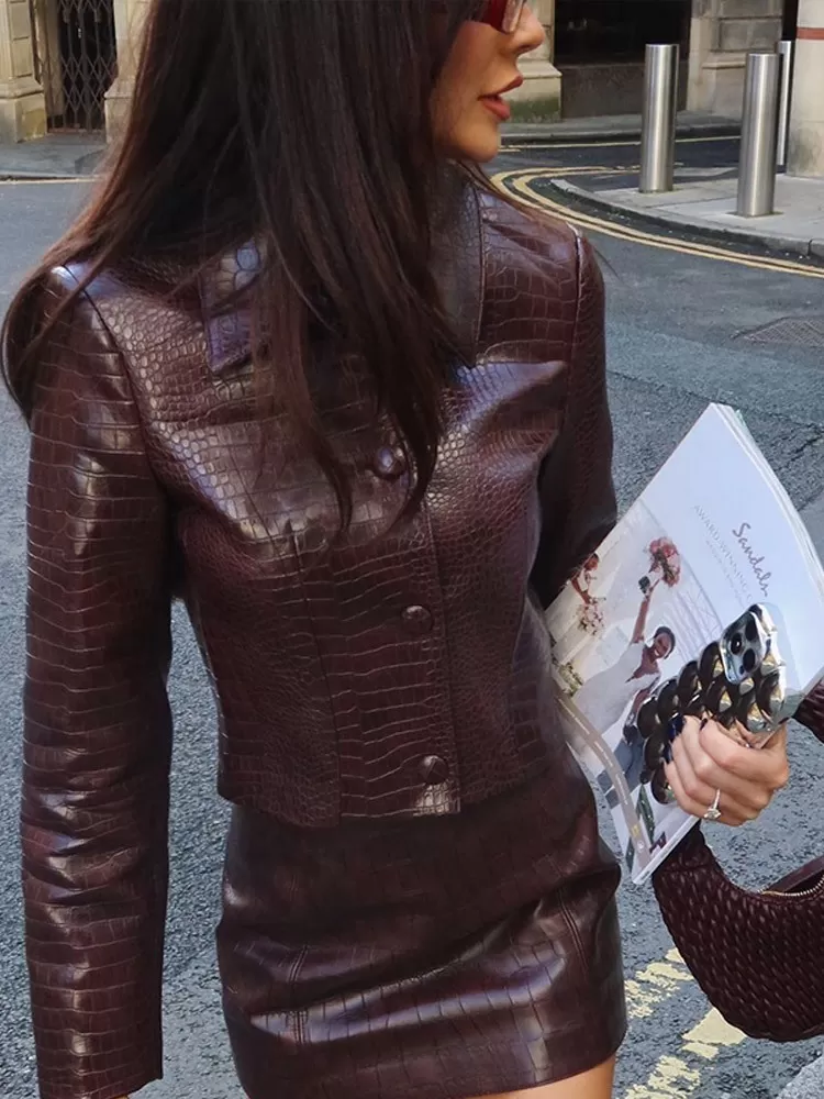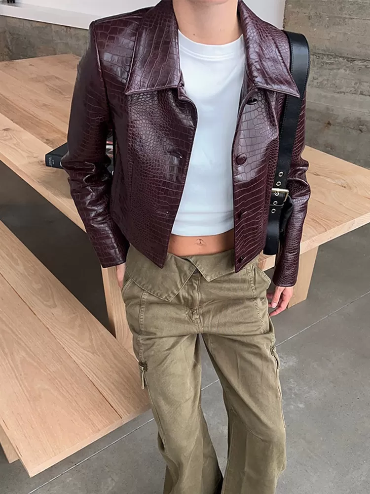 Wine Red Lapel Long Sleeve Leather Coat Wine Red Lapel Long Sleeve Leather Coat