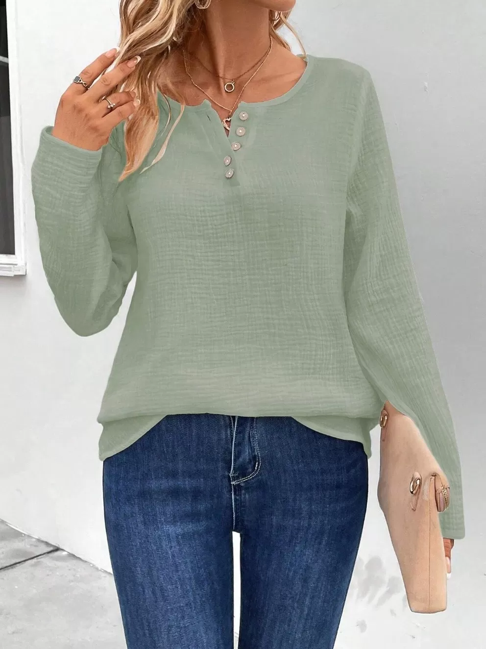 Women’s Comfortable Long Sleeve Button Pullover Top