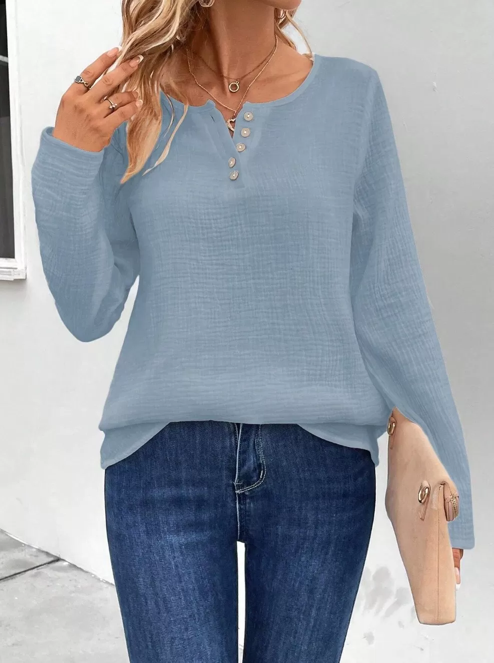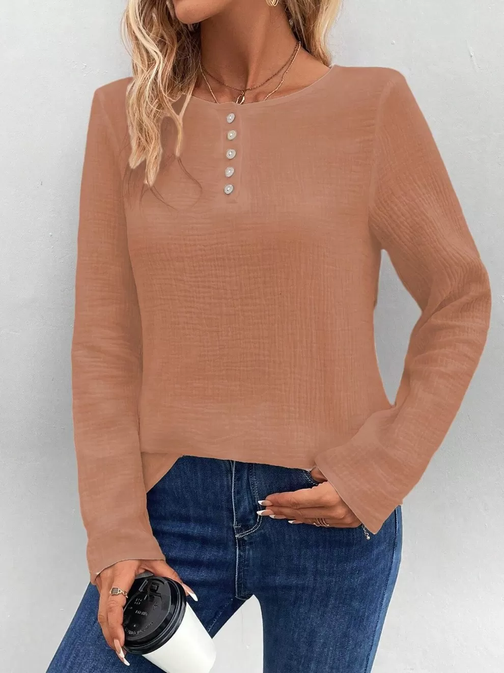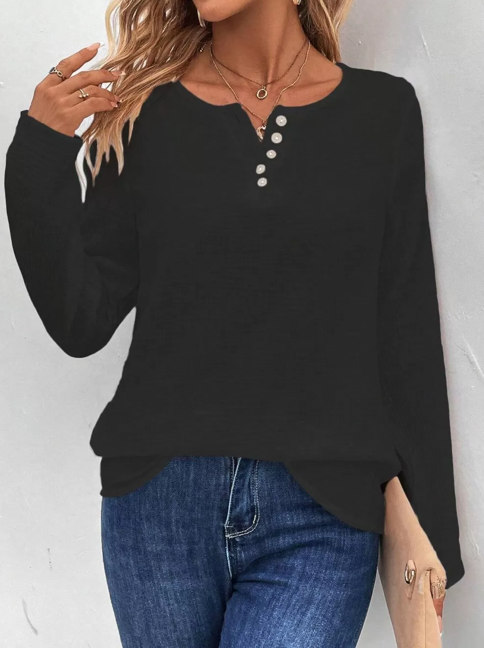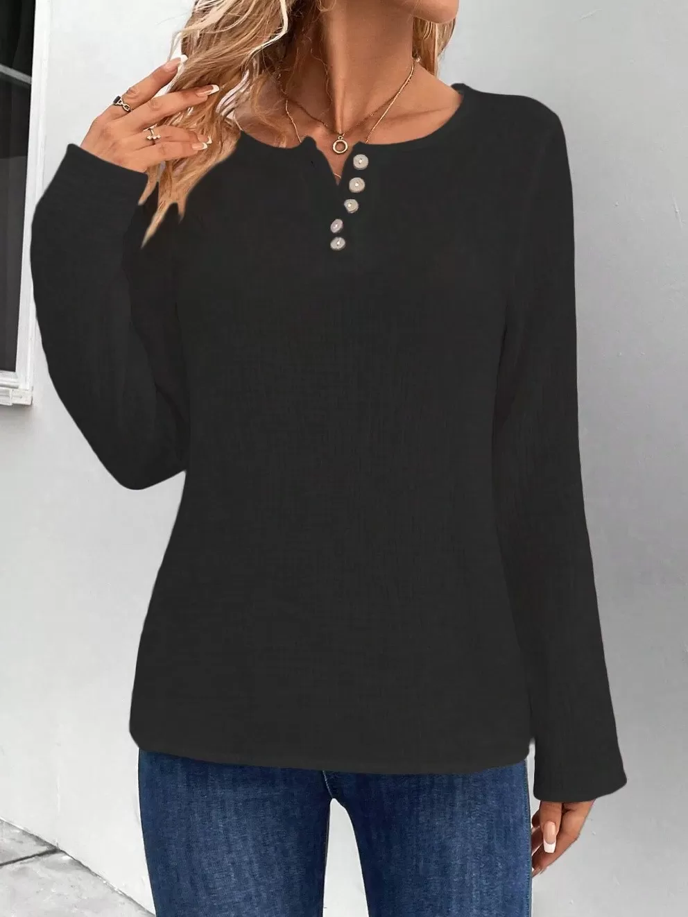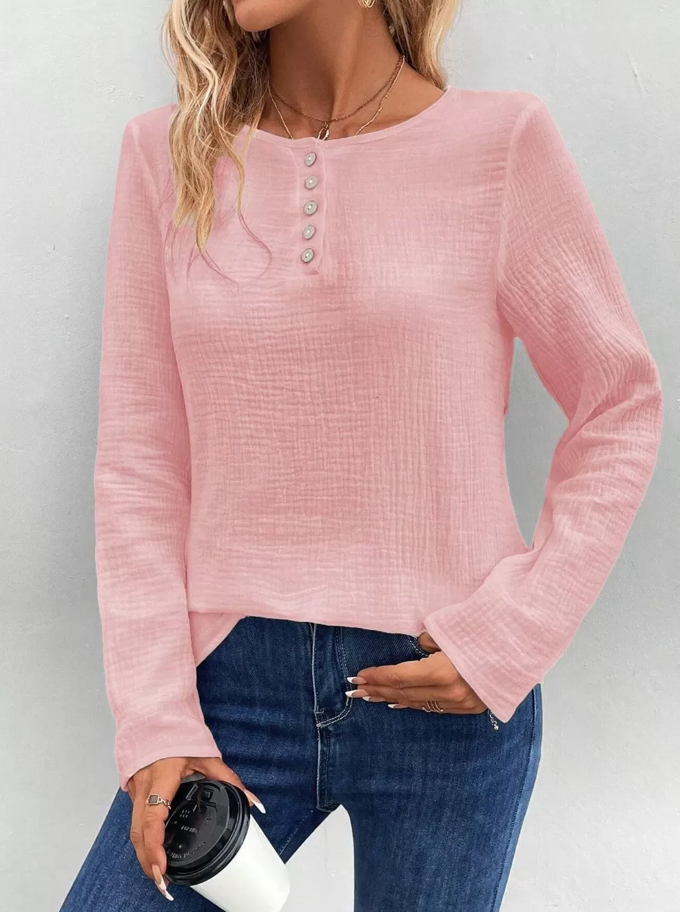Women’s Comfortable Long Sleeve Button Pullover Top