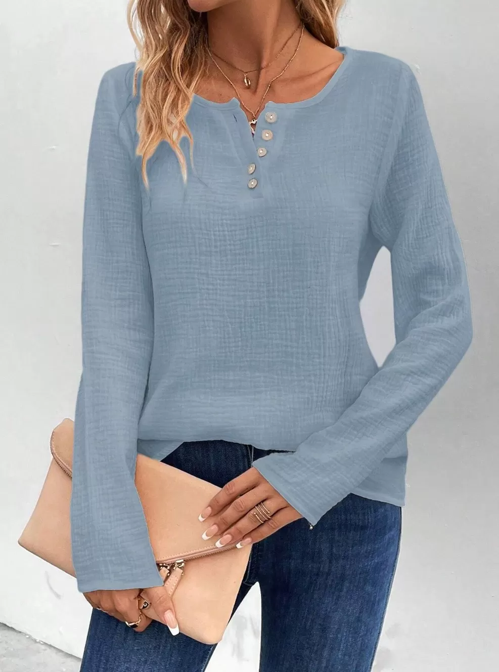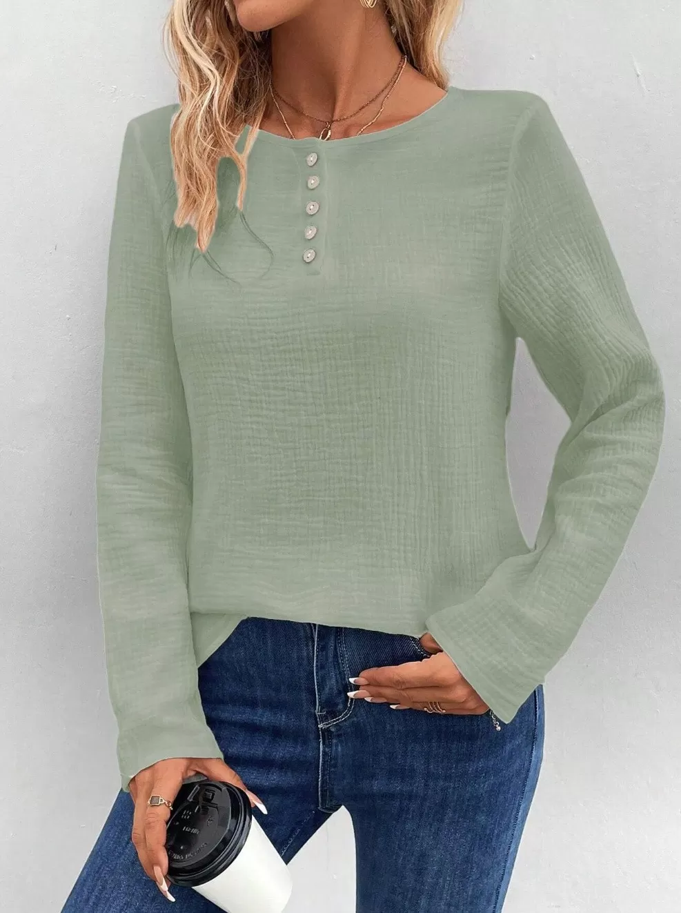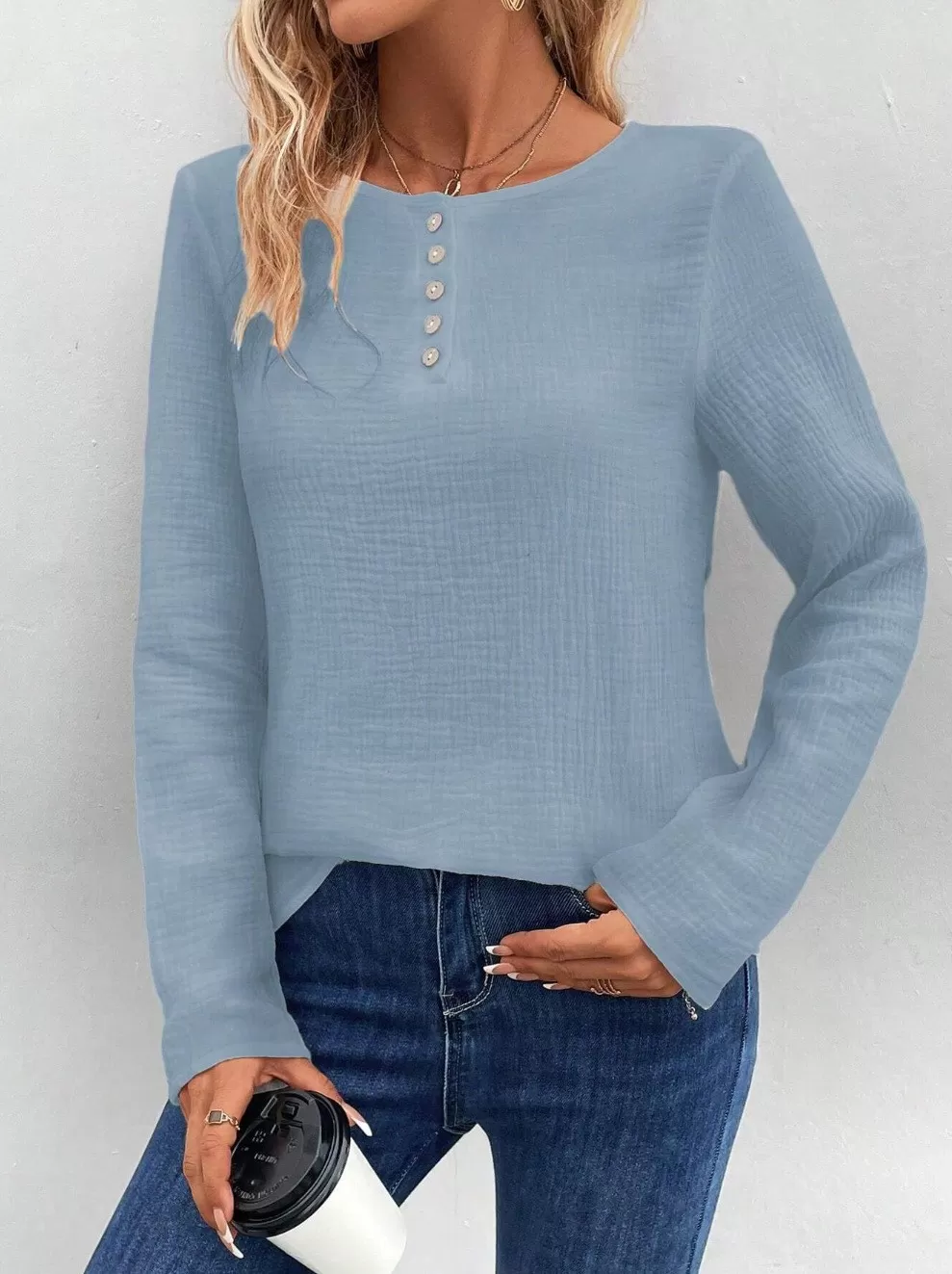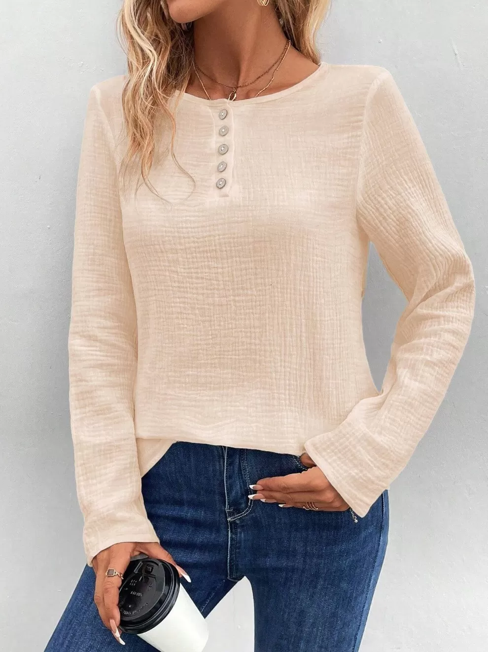 Women’s Comfortable Long Sleeve Button Pullover Top