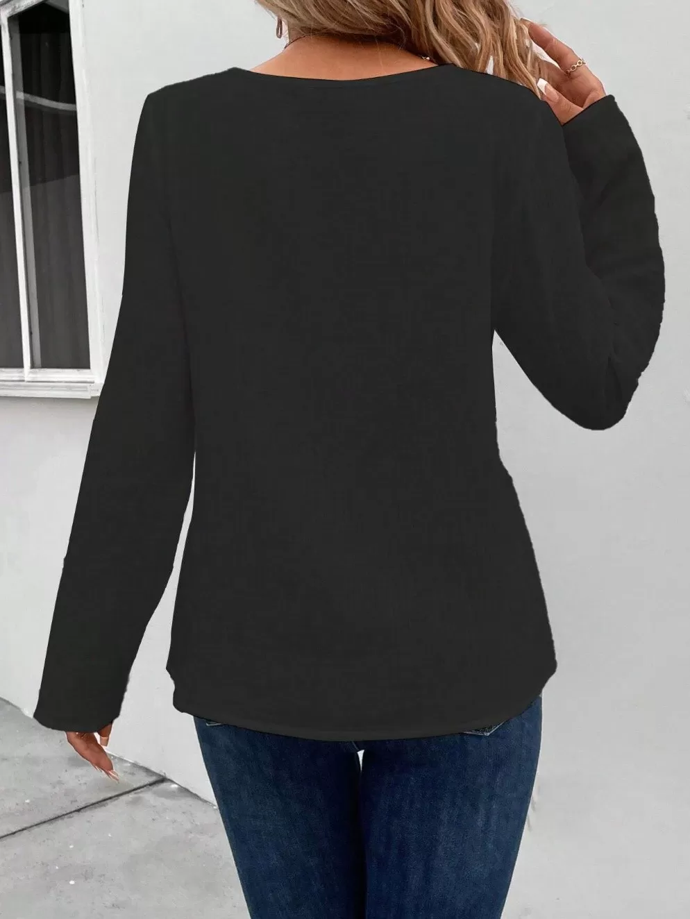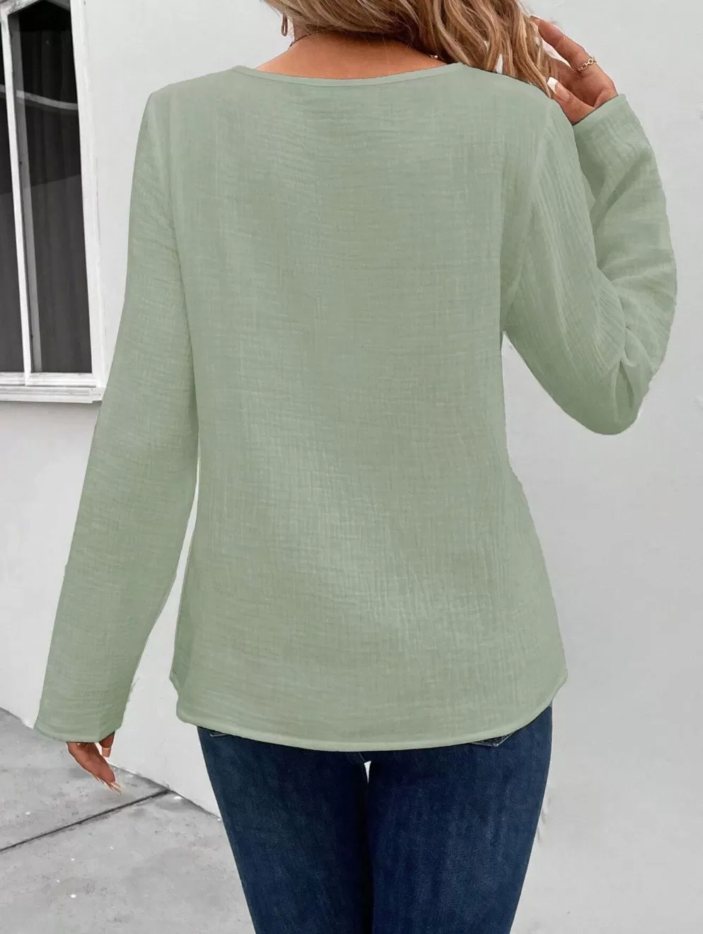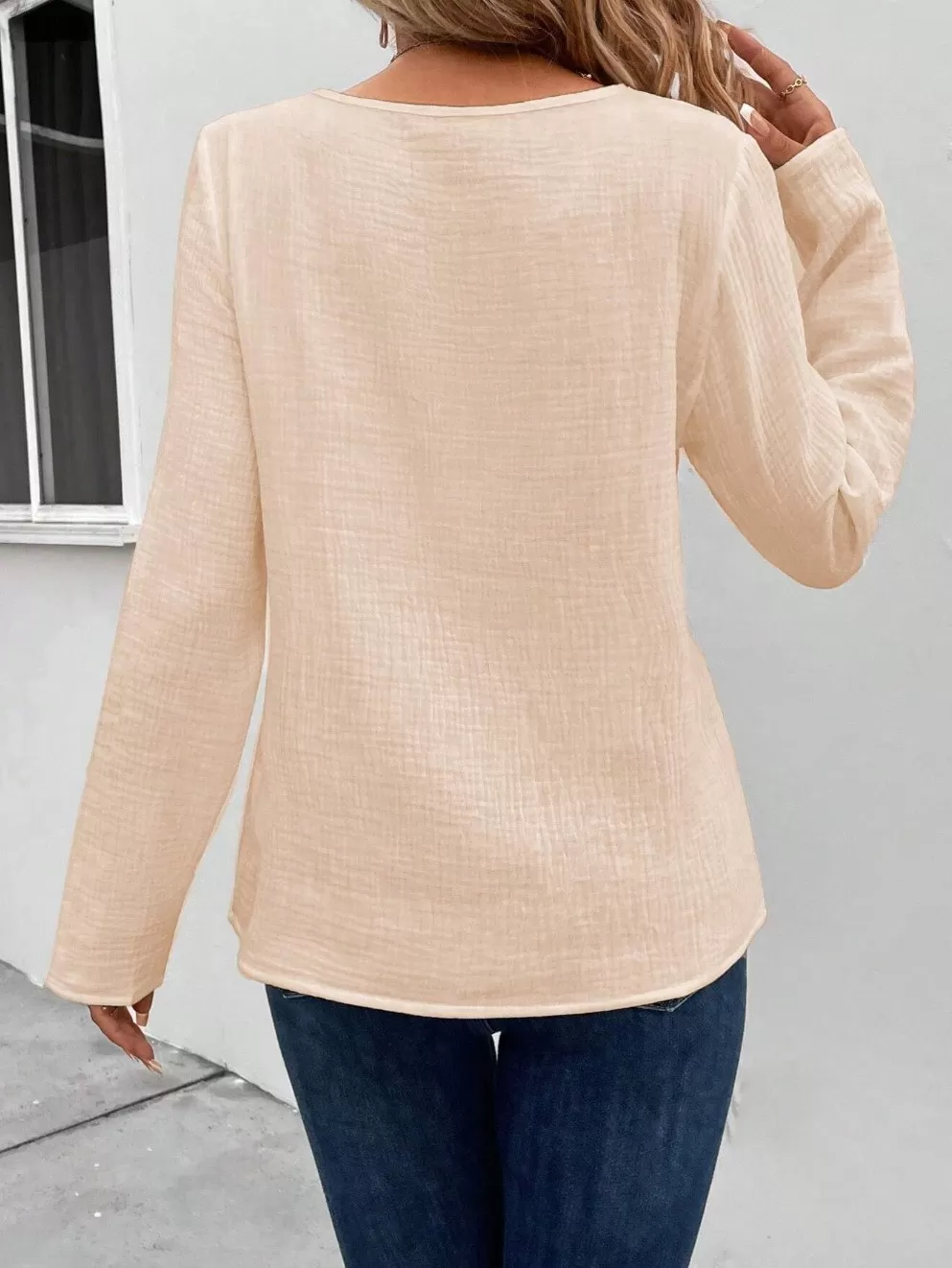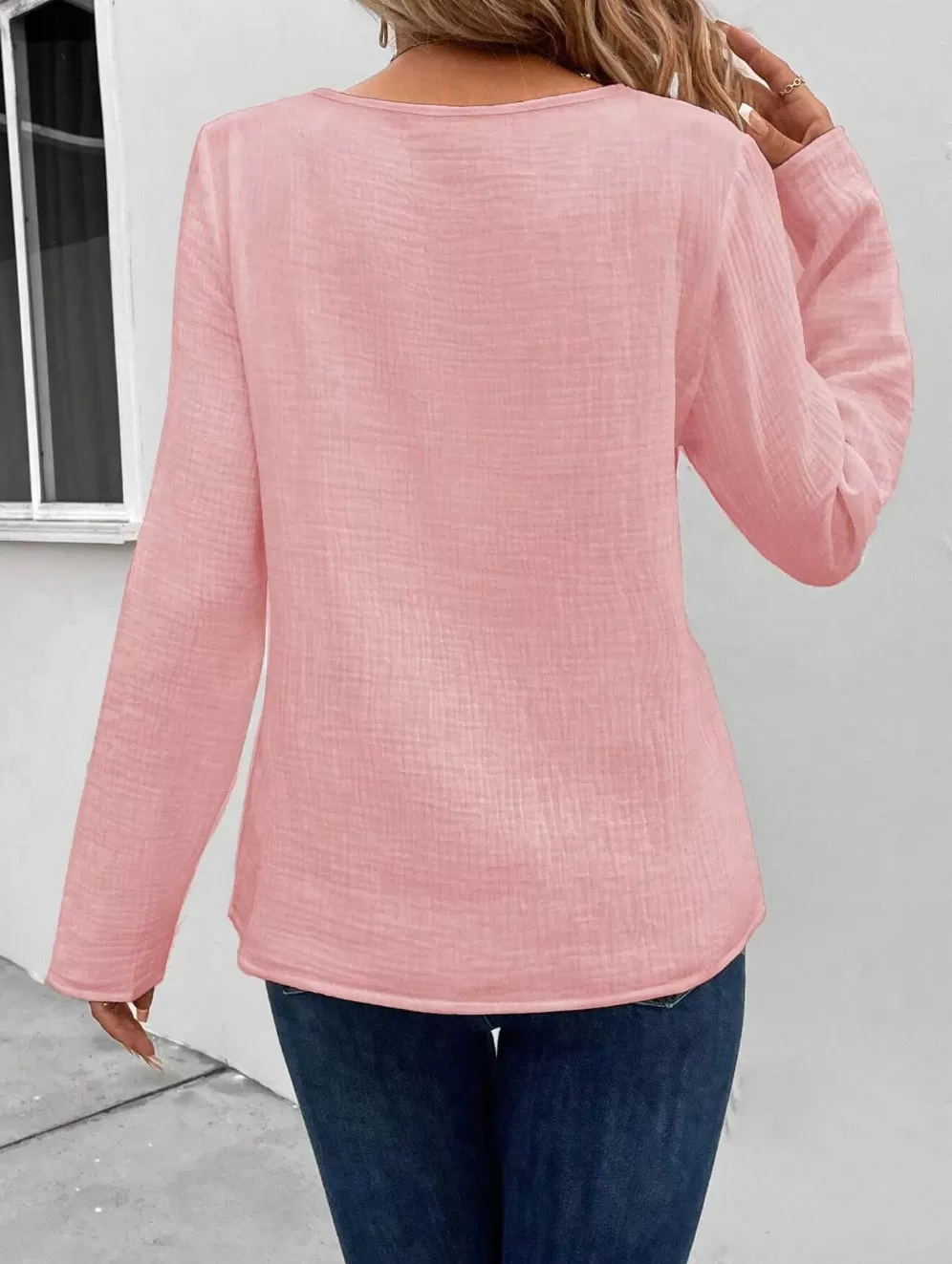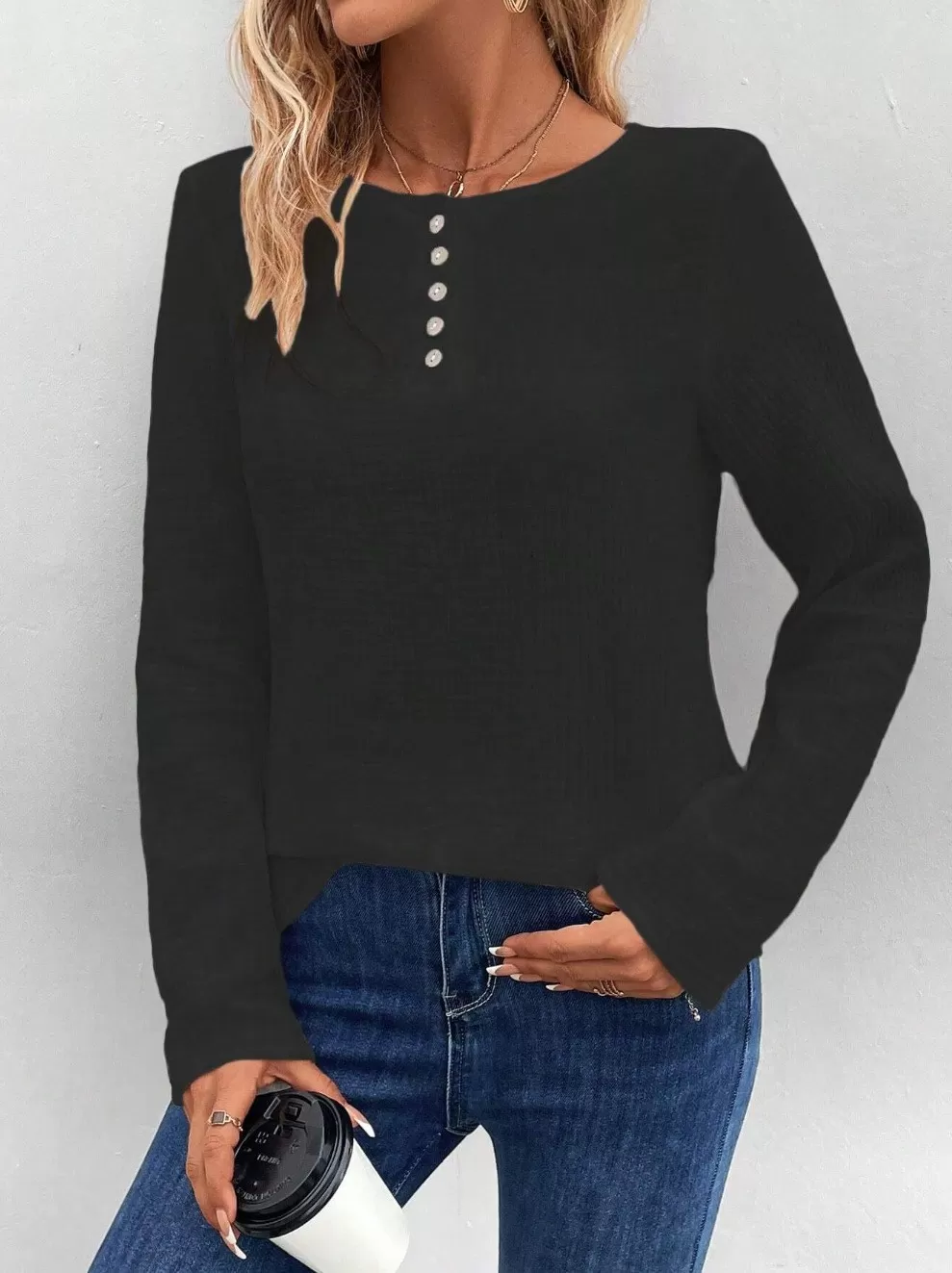 Women’s Comfortable Long Sleeve Button Pullover Top