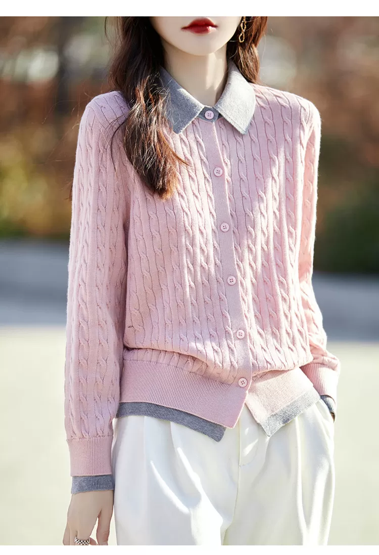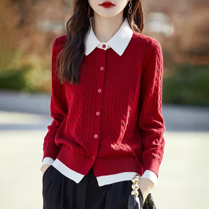 Women’s Contrast Color Fashion Slim-fit Cashmere Lapel Sweater
