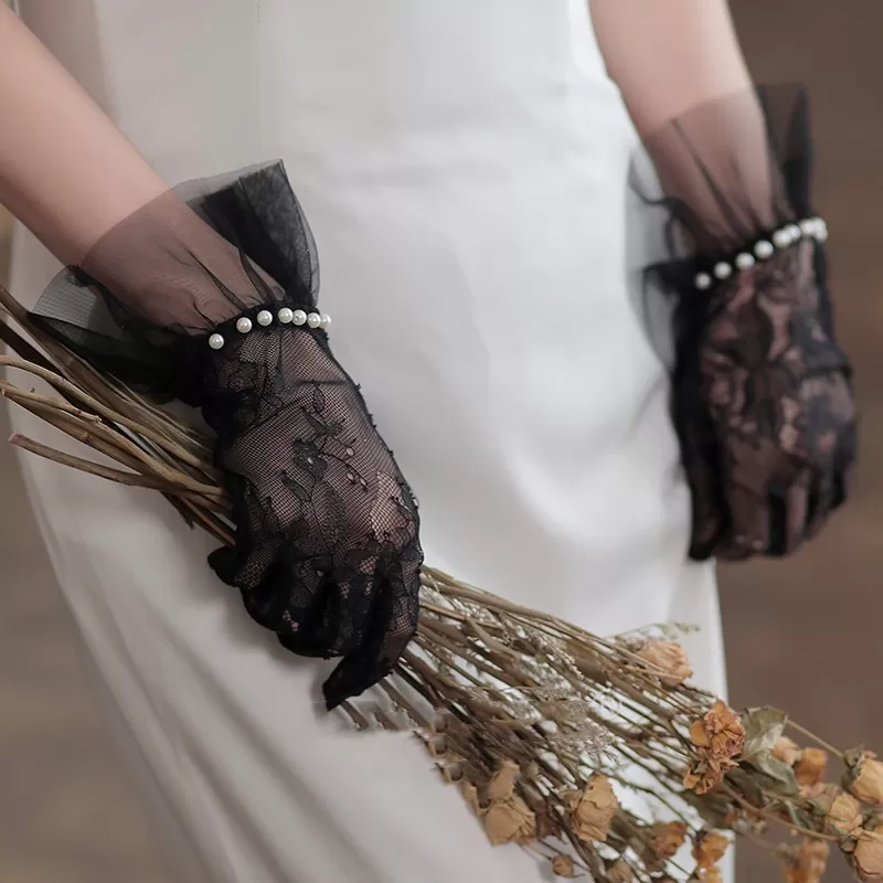 Women’s Exquisite Lace Pearl Gloves