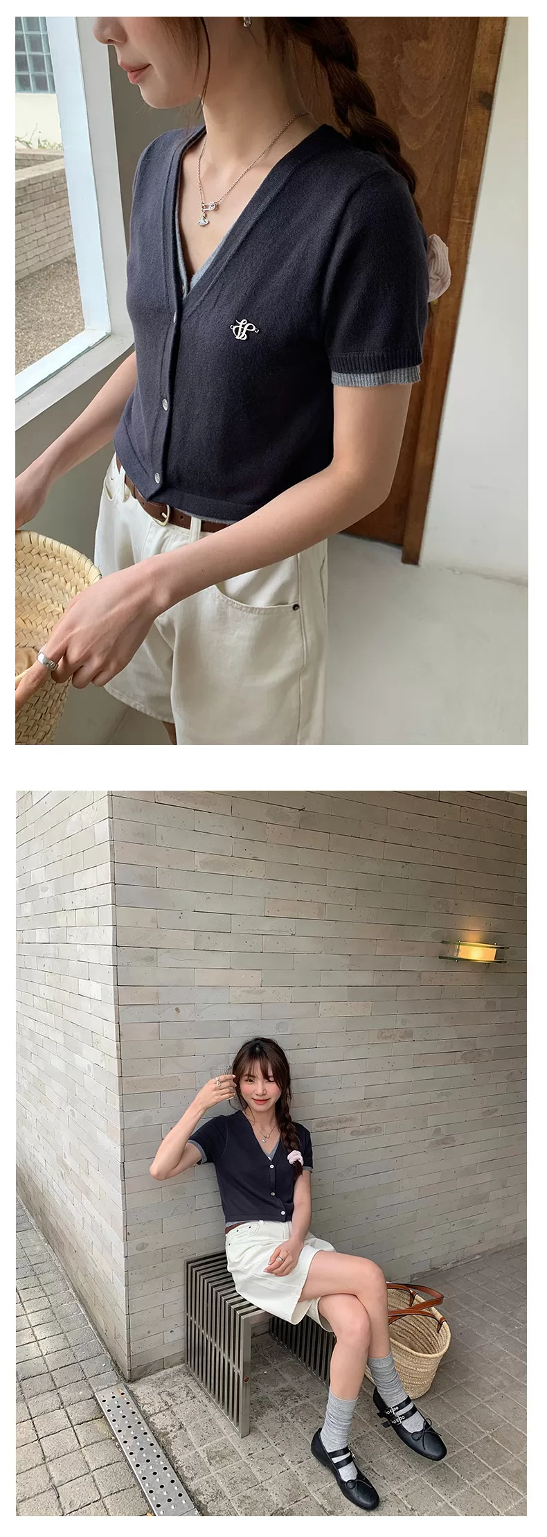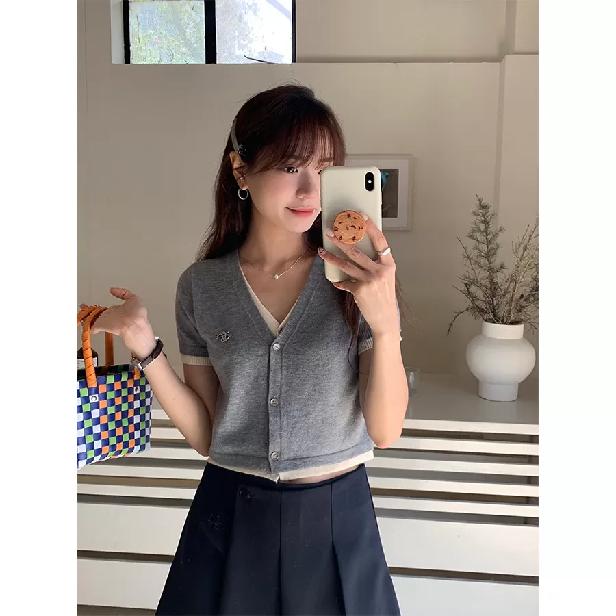 Women's Fake Two-piece V-neck Short-sleeved Sweater Women's Fake Two-piece V-neck Short-sleeved Sweater