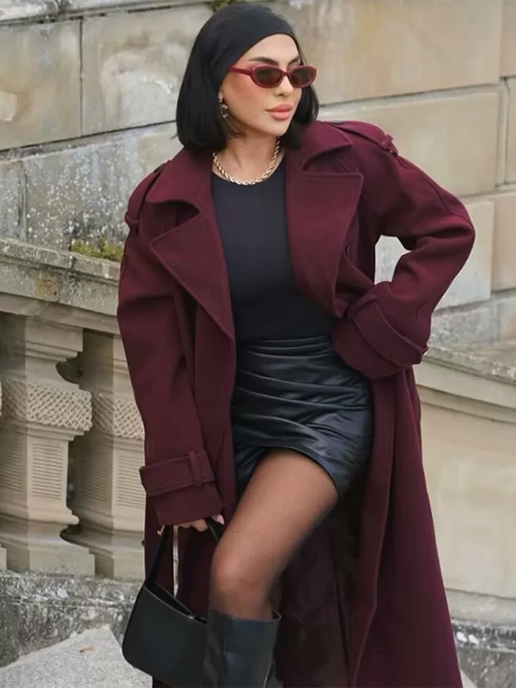Women's Fashion Lace-up Woolen Trench Coat Women's Fashion Lace-up Woolen Trench Coat