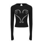 Women's Heavy Embroidery Hot Drilling Cotton Long-sleeved T-shirt Women's Heavy Embroidery Hot Drilling Cotton Long-sleeved T-shirt