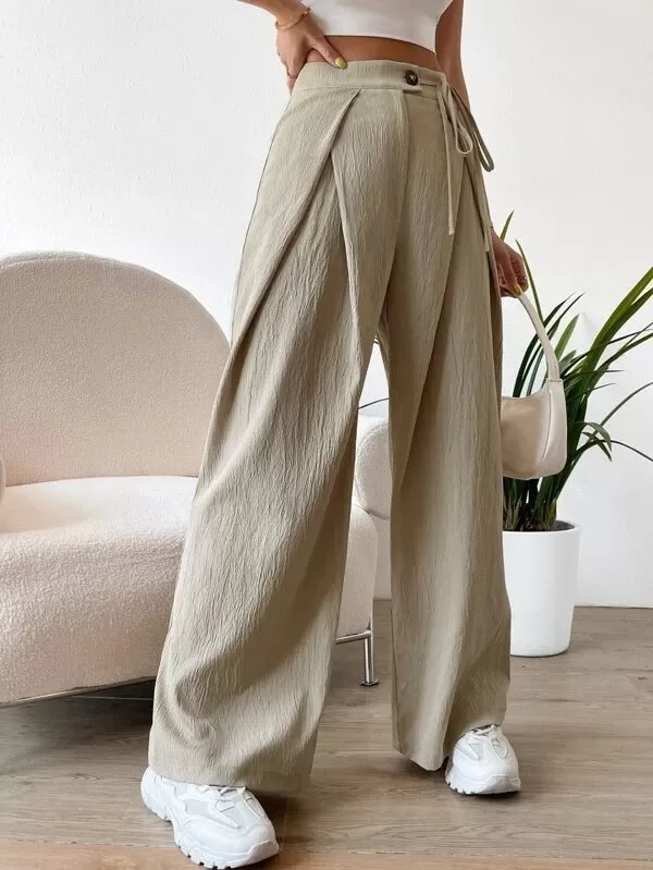 Women’s High Waist Drawstring Patchwork Wide-leg Pants Casual Straight Pants