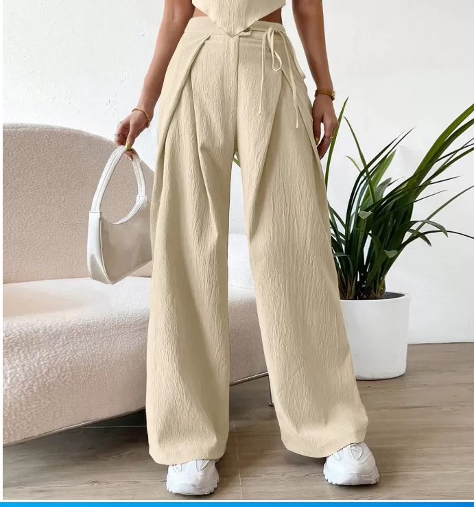 Women's High Waist Drawstring Patchwork Wide-leg Pants Casual Straight Pants Women's High Waist Drawstring Patchwork Wide-leg Pants Casual Straight Pants