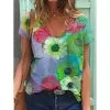 Women’s Printed Short-sleeved T-shirt V-neck Loose Top