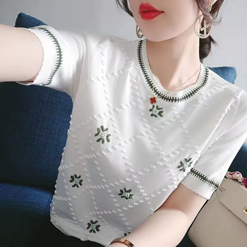 Women's Short-sleeved T-shirt Round Neck Embroidered Women's Short-sleeved T-shirt Round Neck Embroidered