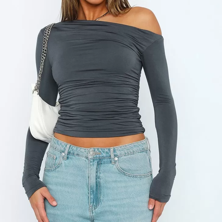 Women's Shoulder Asymmetric Solid Color Top Long Sleeve Women's Shoulder Asymmetric Solid Color Top Long Sleeve