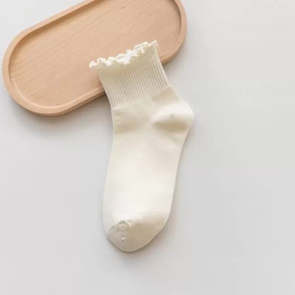 Women's Spring And Autumn Wooden Ear Solid Color Socks Women's Spring And Autumn Wooden Ear Solid Color Socks