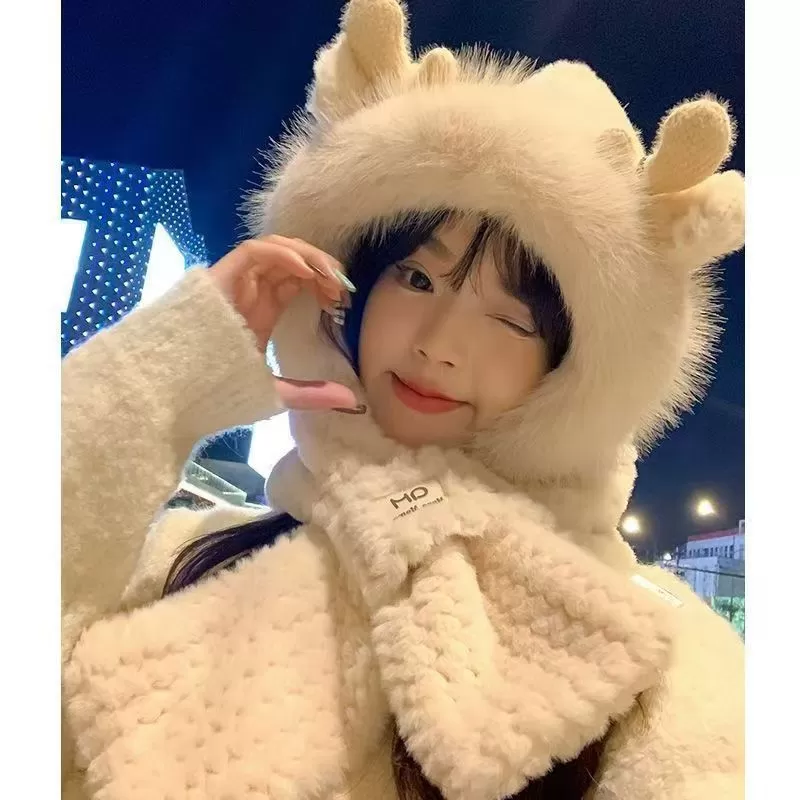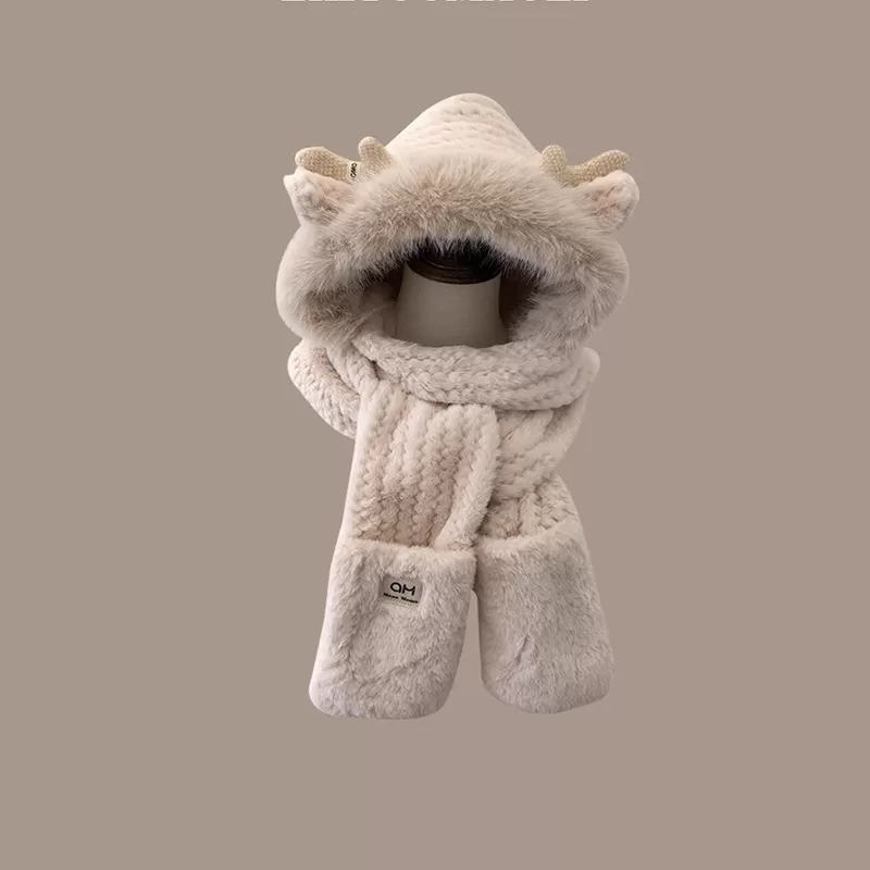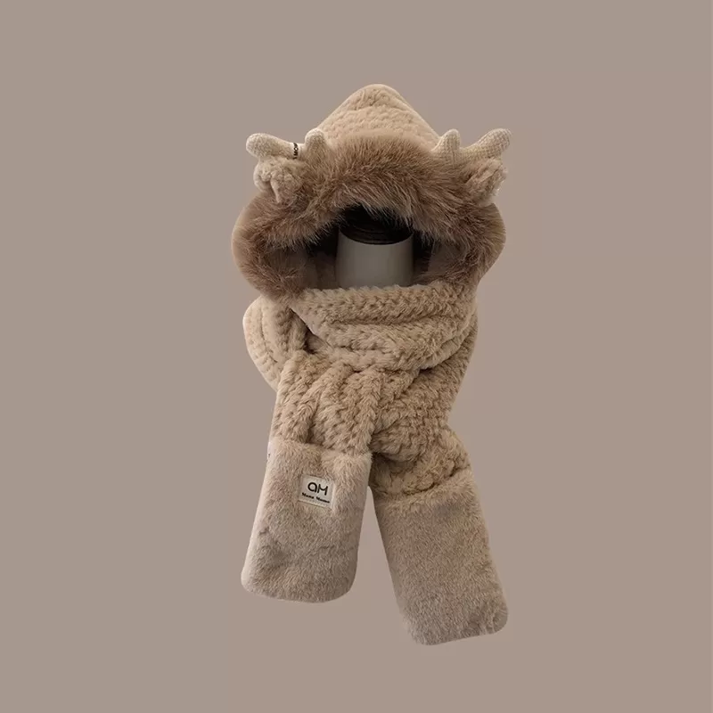 Women’s Warm-keeping And Cold-proof Three-piece Hat Scarf Gloves