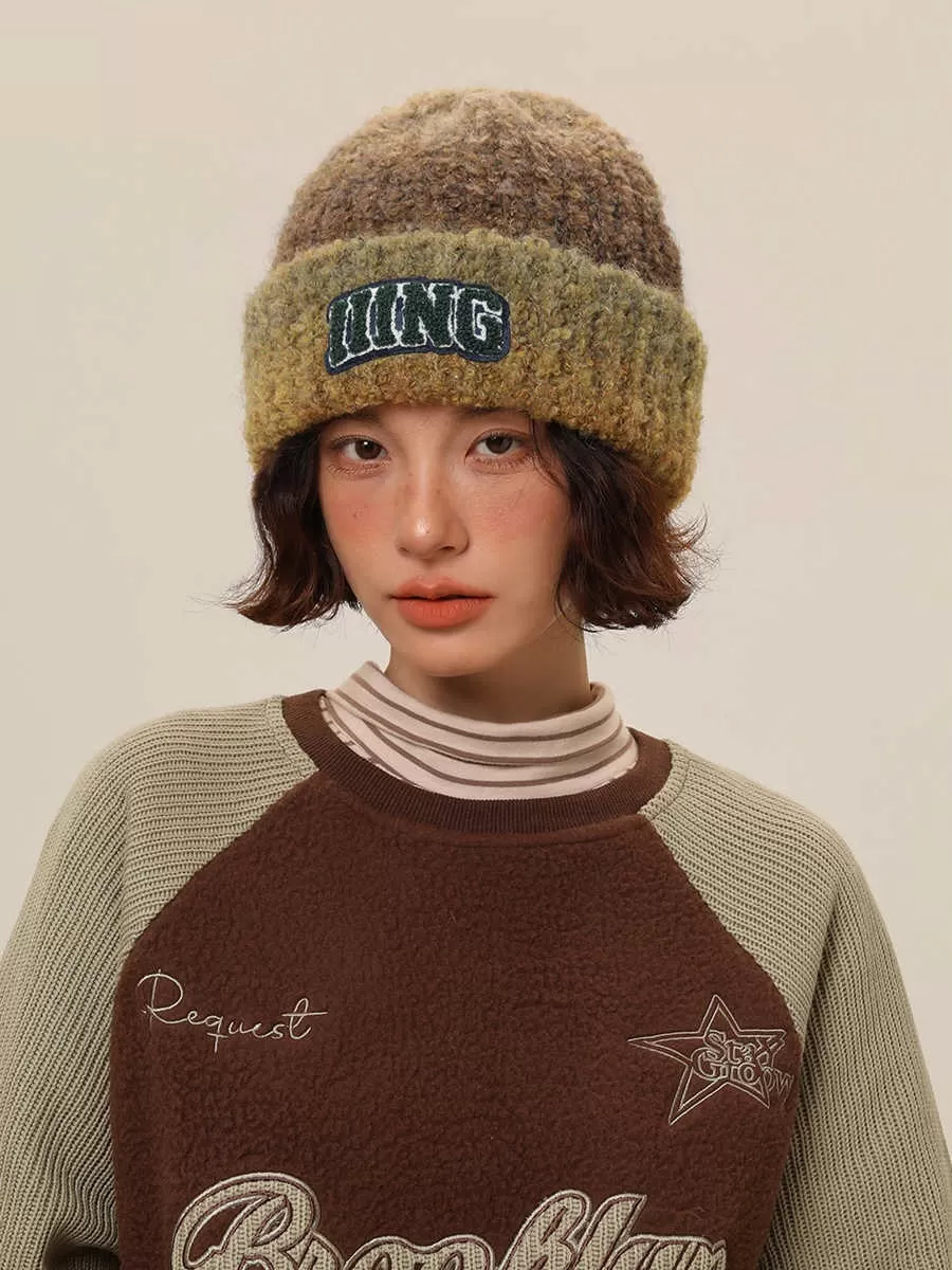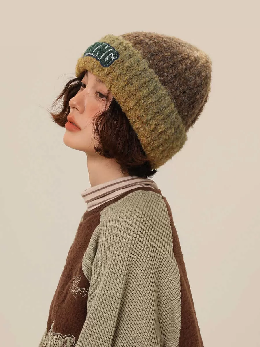 Wool Blend Vintage Gradient Embroidery Knitted Hat Women