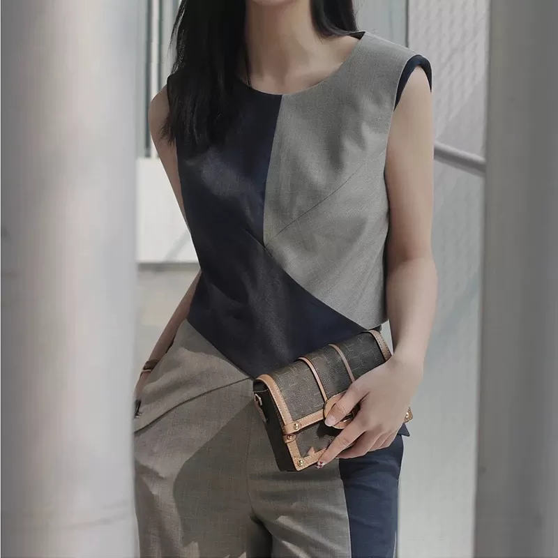Wool Color Matching Sleeveless Jumpsuit Fashion Commuter