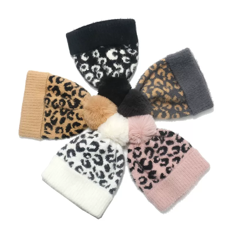 Wool Korean All-match Warm Mink Fur Sleeve Ball Leopard Print Knitted Hat Wool Korean All-match Warm Mink Fur Sleeve Ball Leopard Print Knitted Hat