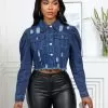 Worn Ripped Puff Sleeve Denim Coat For Women Worn Ripped Puff Sleeve Denim Coat For Women